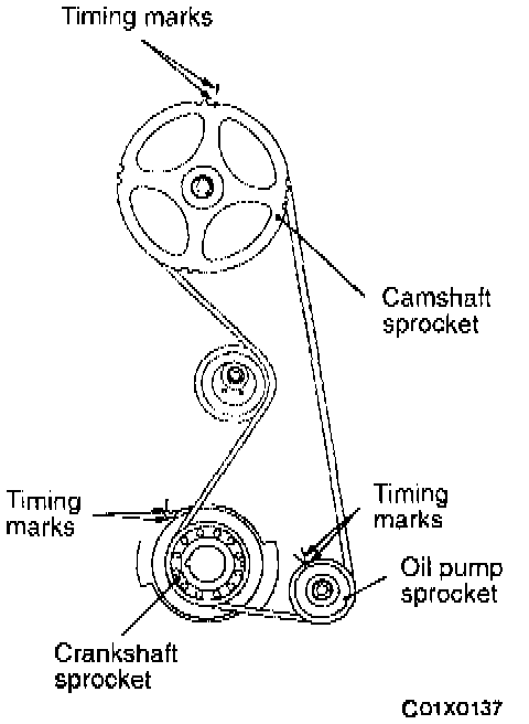 Incorrect removal or installation of the timing belt can result in damage to internal engine components.