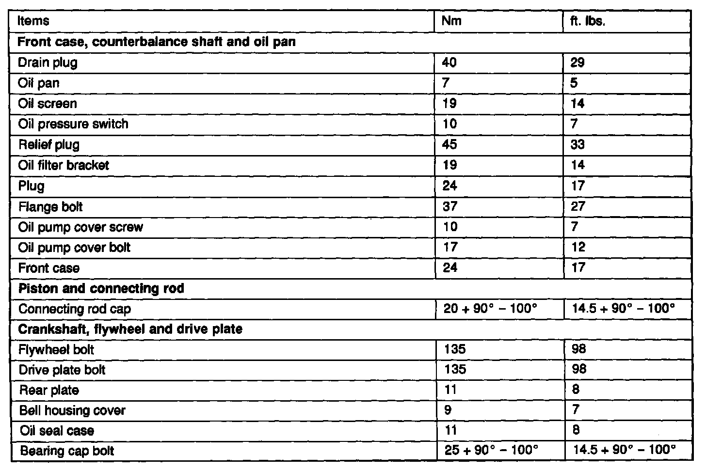 TORQUE SPECIFICATIONS
