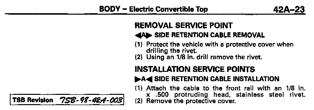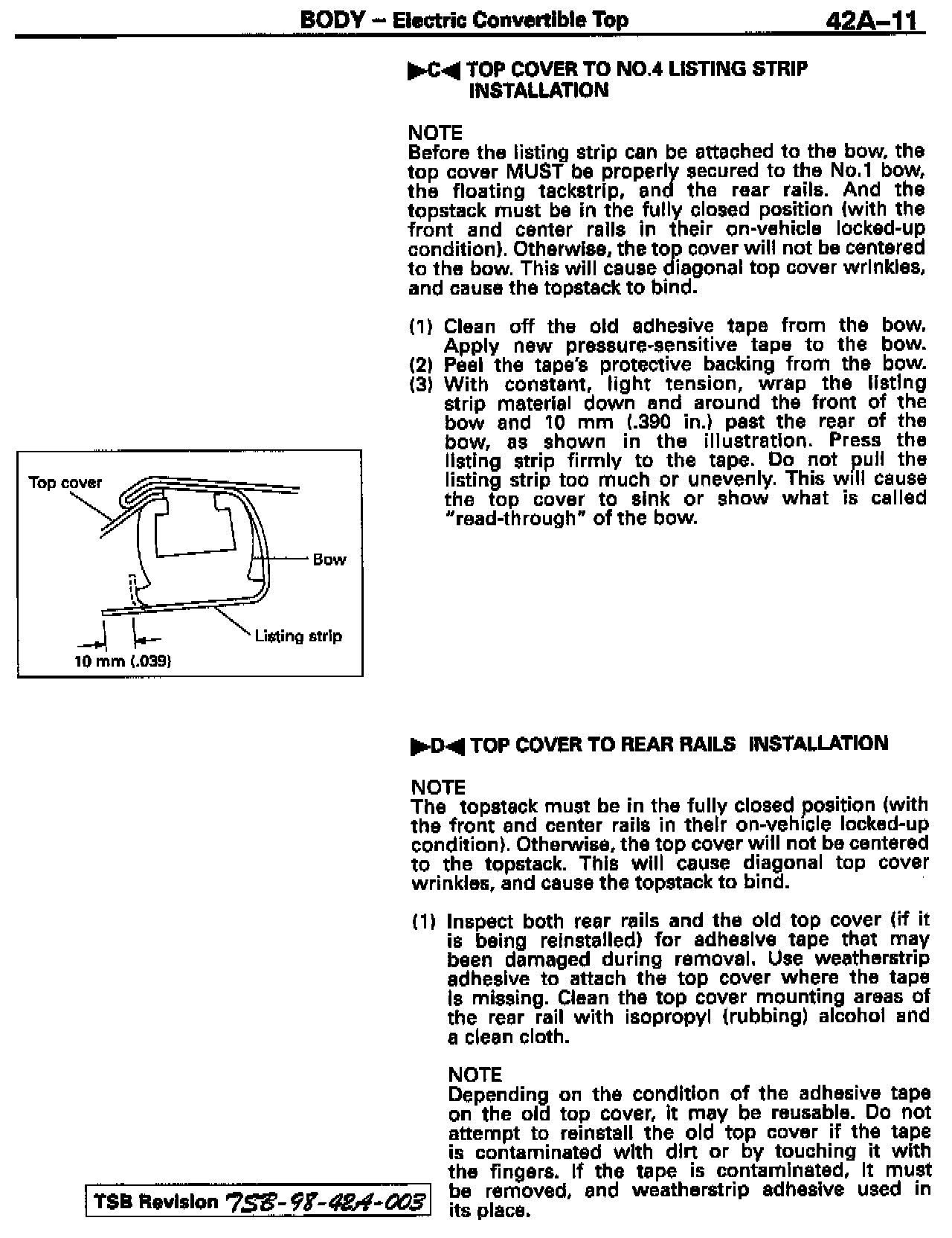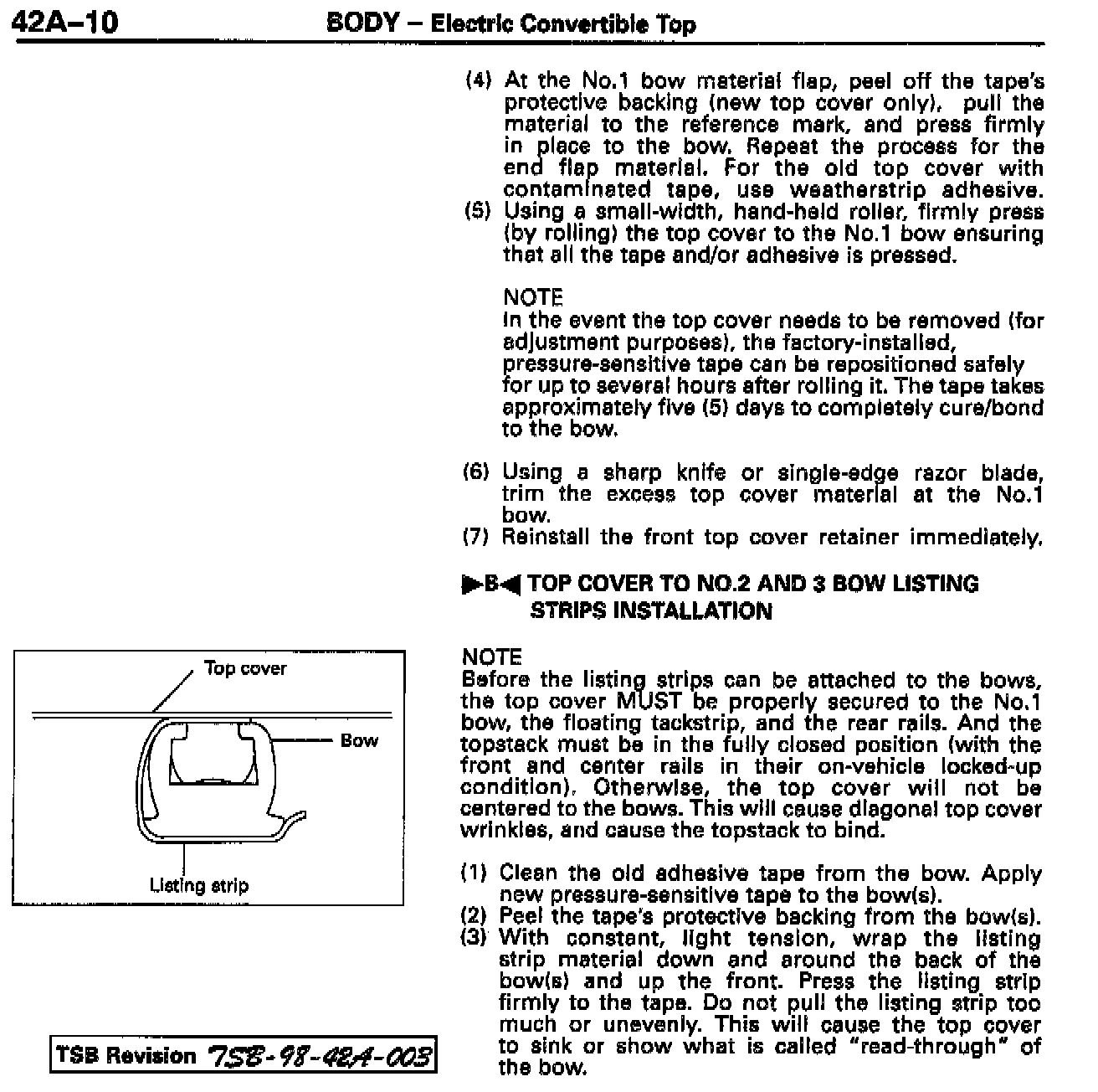 ELECTRIC CONVERTIBLE TOP SUPPLEMENT - SERVICE MANUAL REVISION