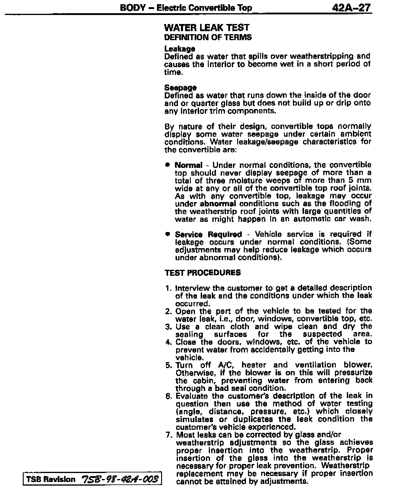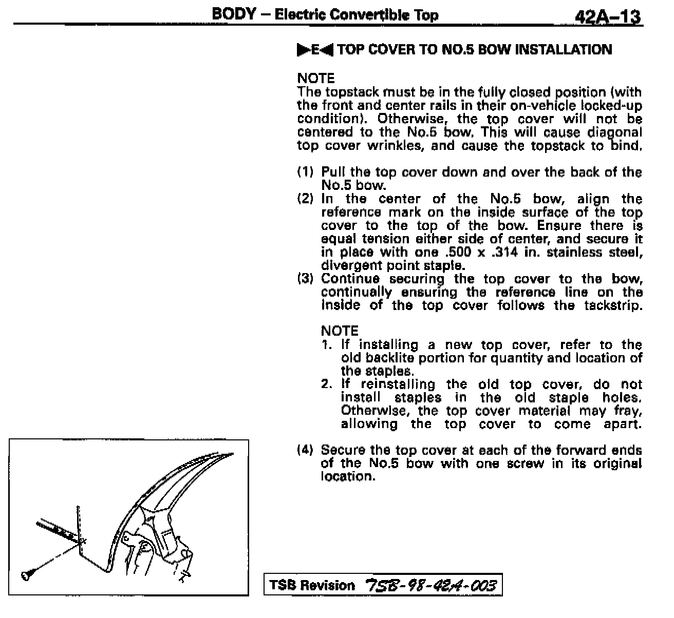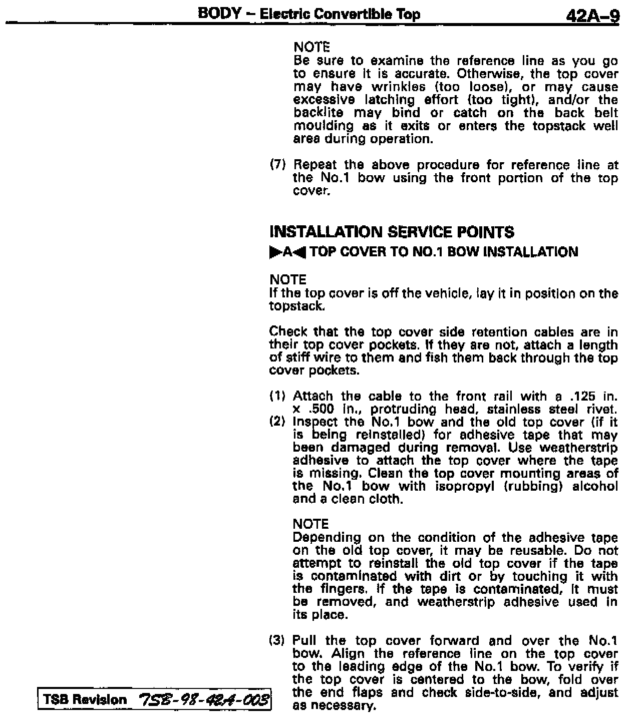 ELECTRIC CONVERTIBLE TOP SUPPLEMENT - SERVICE MANUAL REVISION