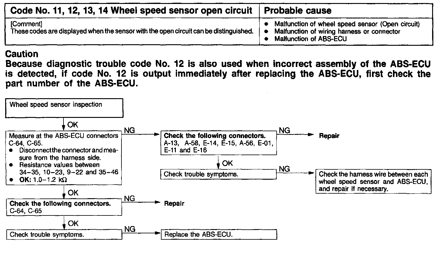 Code # 11, 12, 13, 14 Wheel Speed Sensor Open Circuit: