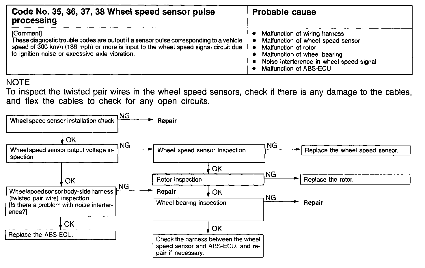 Code # 35, 36, 37, 38 Wheel Speed Sensor Pulse Processing: