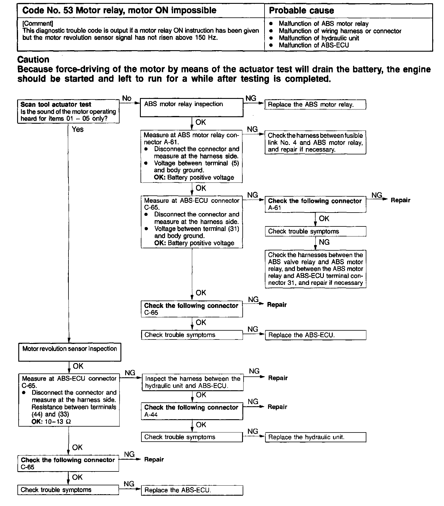 Code # 53 Motor Relay, Motor ON Impossible: