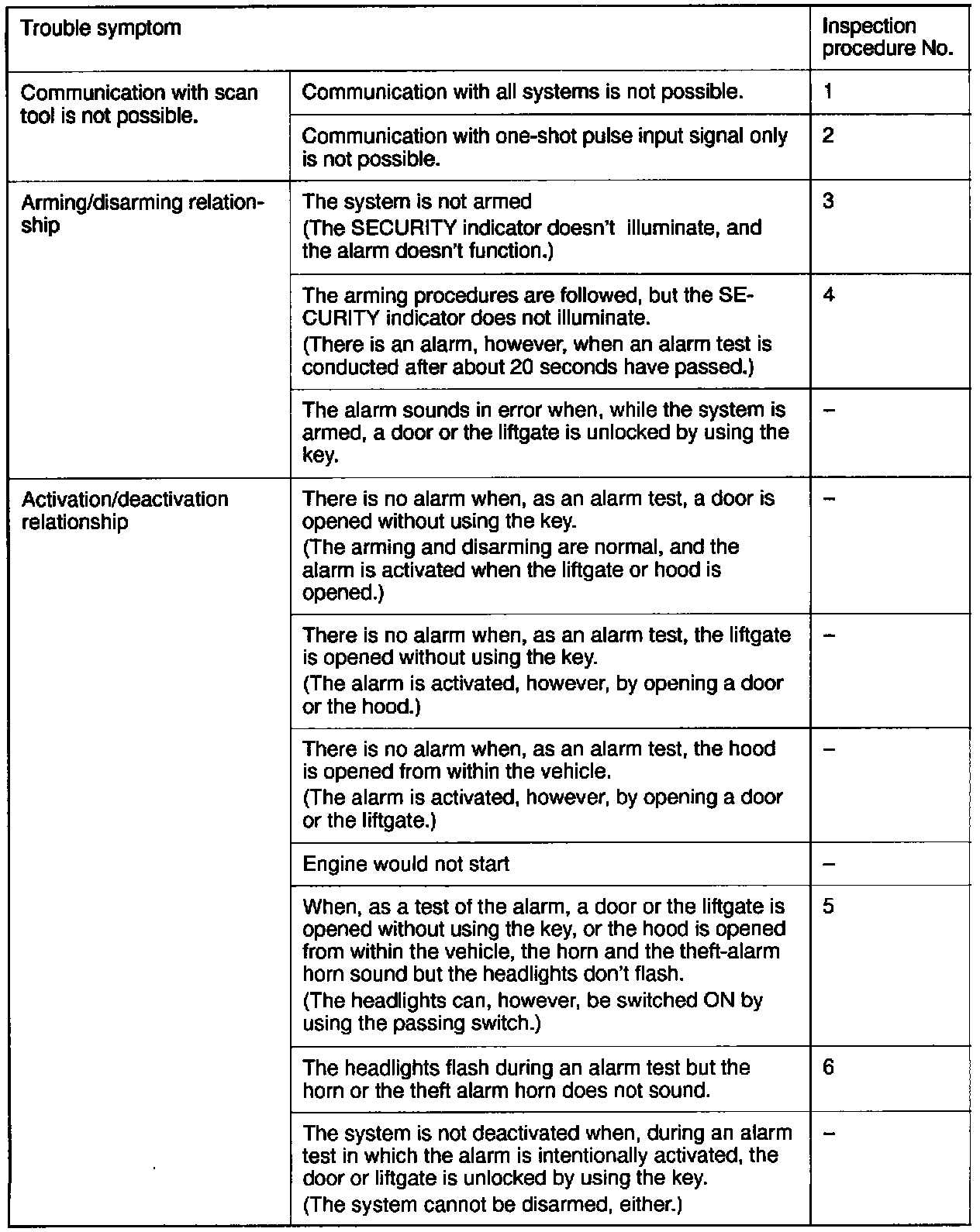 Inspection Chart For Trouble Symptoms: