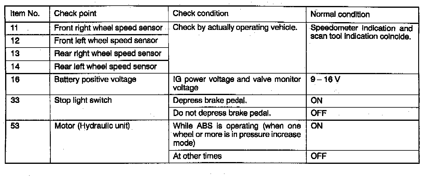 The item numbers (Item no.) do not reflect a numerical process but diagnostic trouble codes.