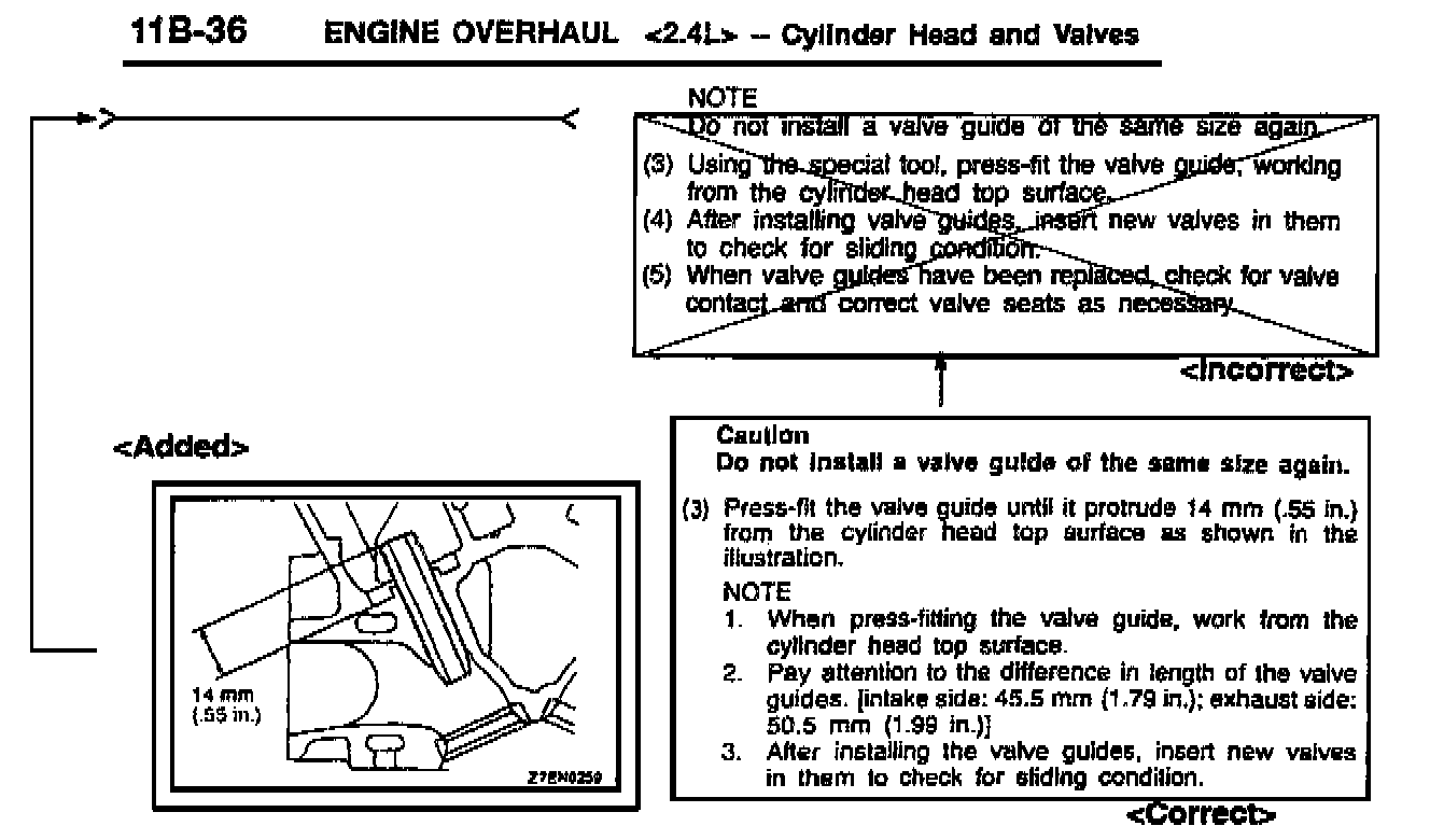 VALVE GUIDE REPLACEMENT PROCEDURES (GALANT) - SERVICE MANUAL REVISION