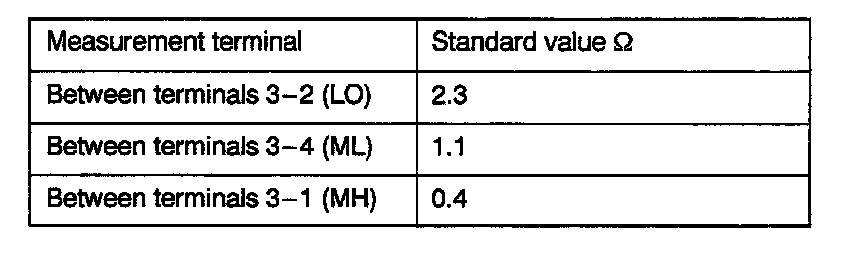 Use a circuit tester to measure the resistance between the terminals as indicated below. Check to be sure that the measured value is at the standard value.
