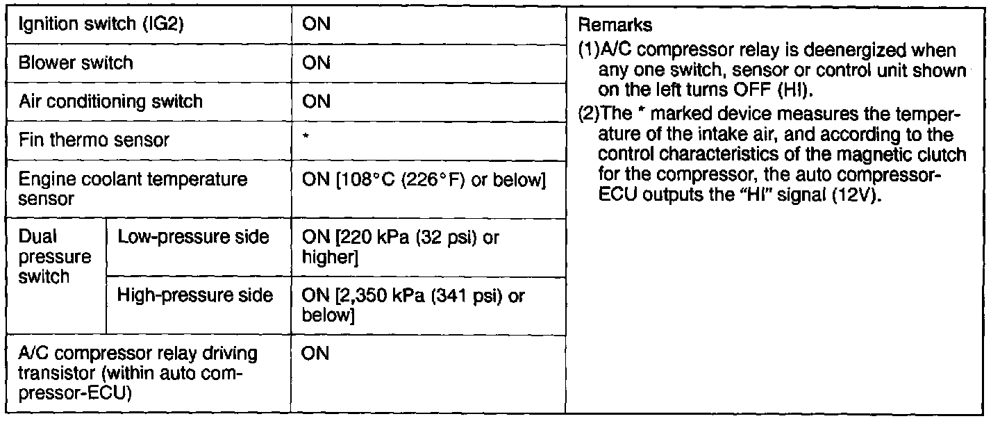 A/C Compressor Relay ON Conditions: