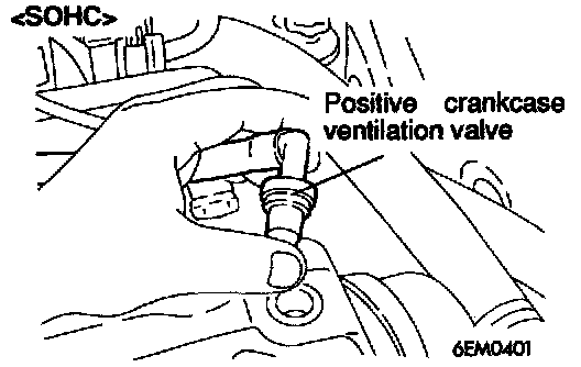5. Place a finger at the opening of the positive crankcase ventilation valve and confirm that vacuum of the intake manifold is felt.
