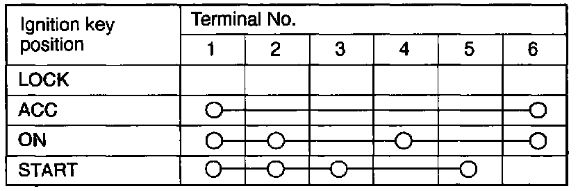 3. Disconnect the wiring connector from the ignition switch and connect an ohmmeter to the switch side connector.