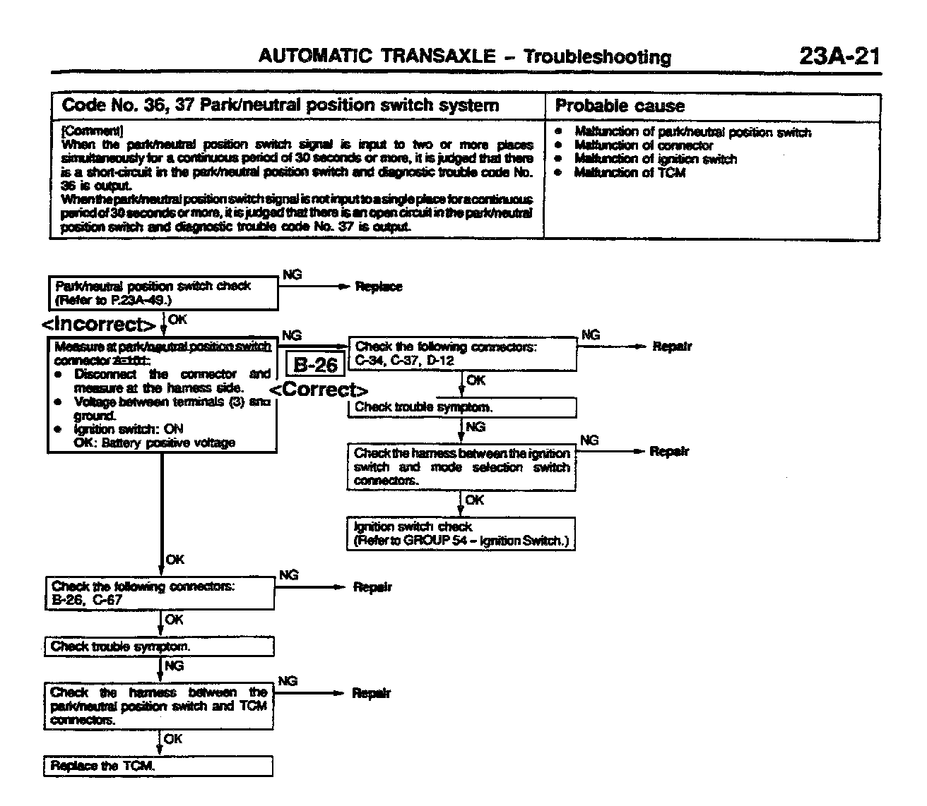 Park/Nuetral Switch - Code Chart 36 & 37 Correction