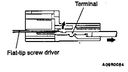 Use a flat-tip screwdriver or similar tool to pull out the terminal from the overdrive switch/position indicator light connector case.