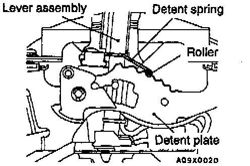 Shift the selector lever to the neutral (N) position, and then install the detent spring assembly so that the roller is in the detent plate groove.
