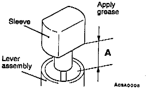 1. Put the selector lever in the "N", position, turn the sleeve and adjust dimension A between the sleeve and the end of the lever so it reaches the standard value.
