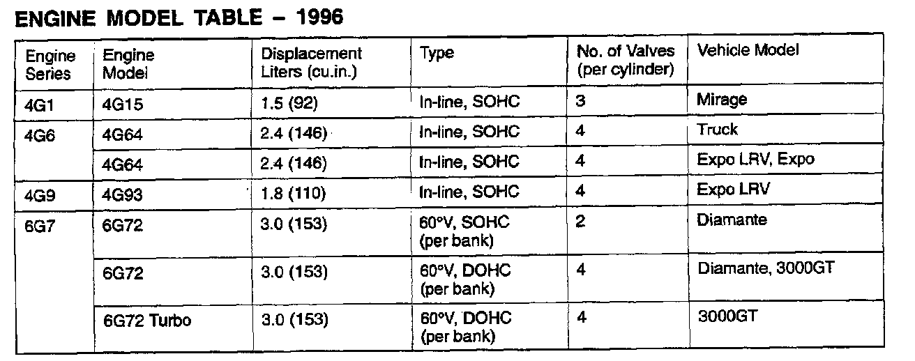 Mirage L4-1468cc 1.5L SOHC 12 Valve