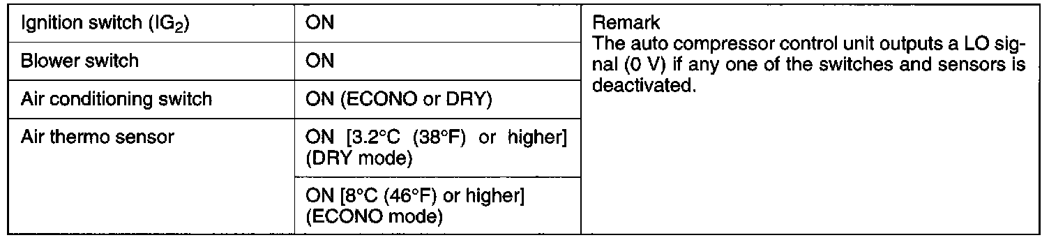 Auto Compressor Control Unit HI Signal Output Conditions: