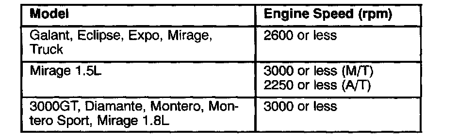 ^ Engine load: 15% or less (M/T); 20% or less (A/T - Galant, Expo, Eclipse, Mirage, Truck