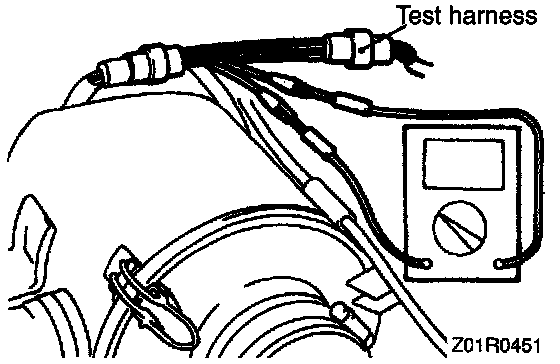 - When checking for a harness short-circuit, open one end of the harness and check for continuity between the other end and ground.