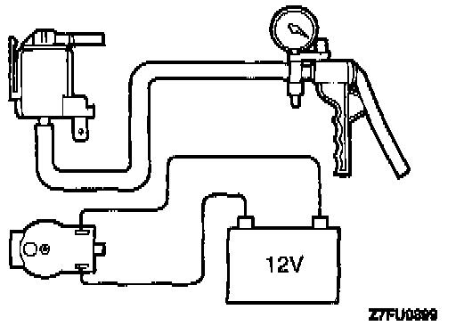 4. Check airtightness by applying a vacuum with voltage applied directly from the battery to the EGR solenoid and without applying voltage.