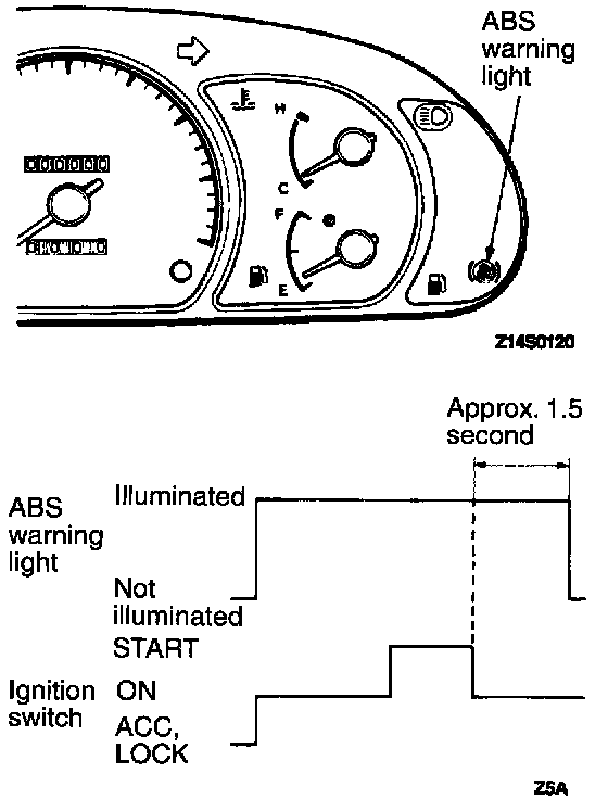 (2) When the ignition switch is turned to "START" to start the engine, the ABS warning light switch off after approx. 1.5 second.
