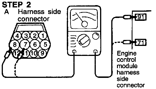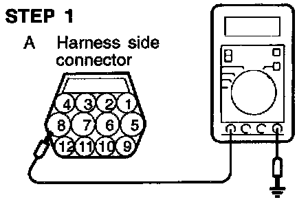 NOTE: Insert the probes of the circuit tester into both ends of the harness.