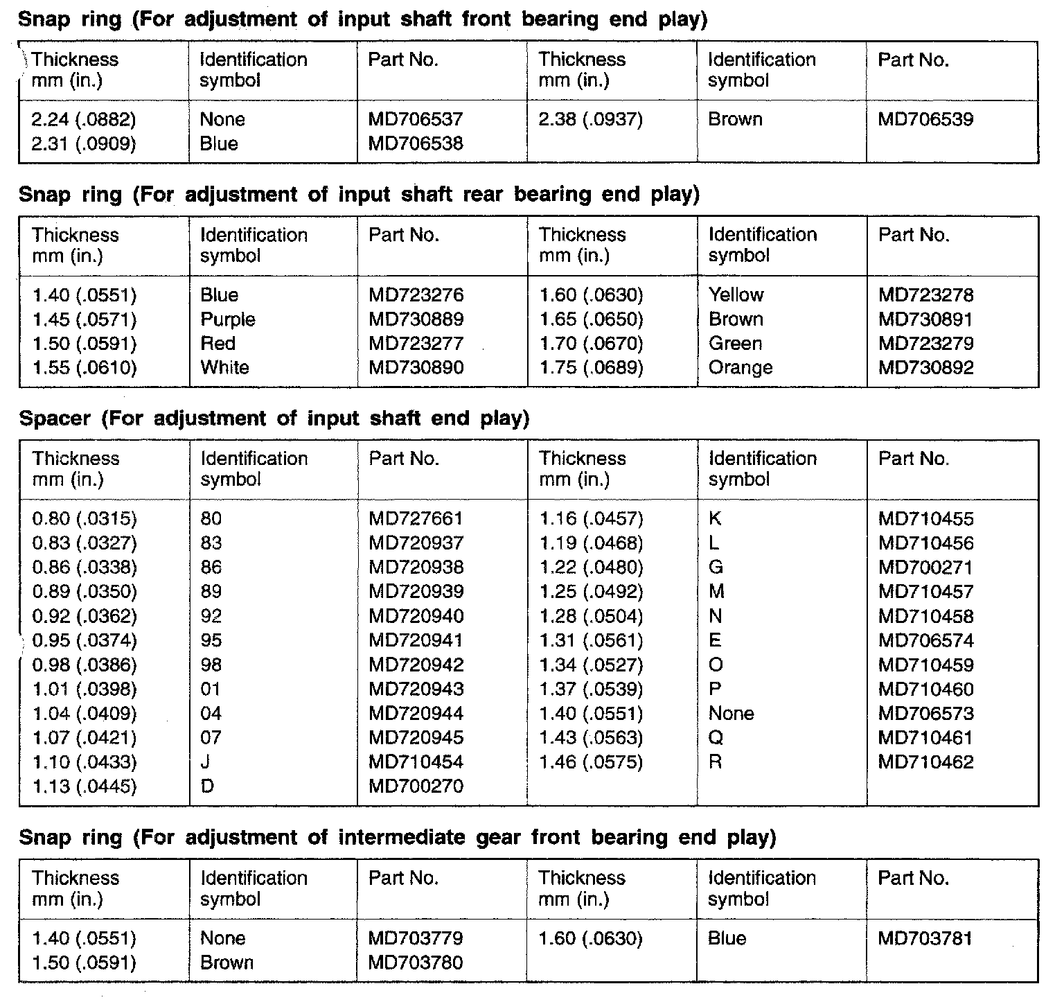 F5M33 5-spd M/T, Input Shaft & Intermediate Bearing End Play: