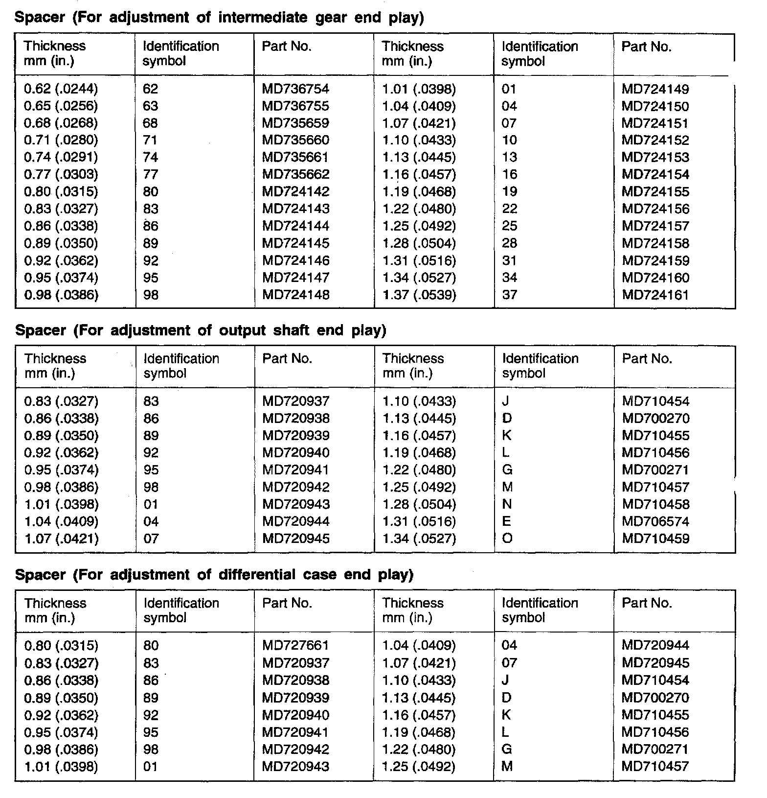 F5M33 5-spd M/T, Differential Pinion Backlash: