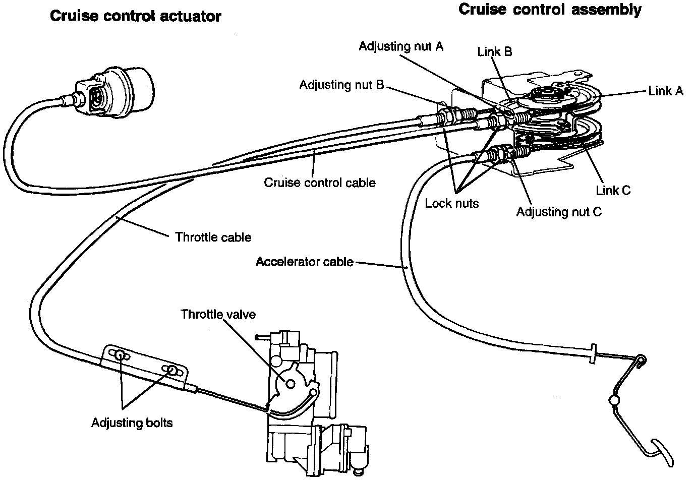 (10) Secure the cruise control cable with the lock nut.