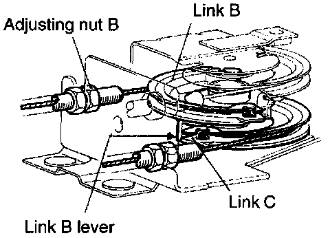 At the position where the lever of intermediate link B is brought into contact with intermediate link C, back off adjusting nut B the specified number of turns.