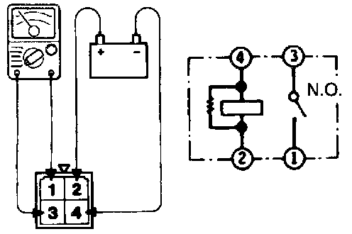 Apply battery power to terminal (2) and connect terminal (4) to the ground.
