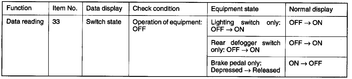 - Brake pedal: Depressed (Stop light switch ON)