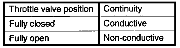 If there is no continuity with the throttle valve fully closed, turn TPS counterclockwise, and then check again.
