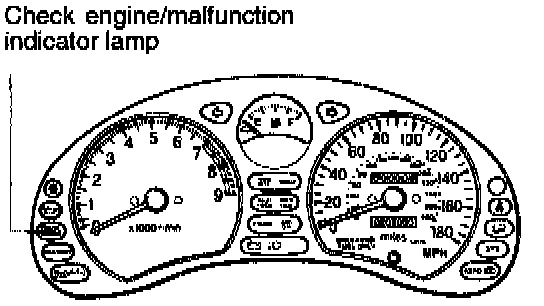 Among the on-board diagnostic items, Malfunction Indicator Lamp (MIL) comes on to notify the driver of the emission control items when an irregularity is detected. However, when an irregular signal returns to normal and the engine control module judges that it has returned to normal, the check engine/malfunction indicator lamp goes out. Moreover, when the ignition switch is turned off, the lamp goes out. Even if the ignition switch is turned on again, the lamp does not come on until the irregularity is detected. Here, immediately after the ignition switch is turned on, the check engine/malfunction indicator lamp is lit for 5 seconds to indicate that the malfunction indicator lamp operates normally.
