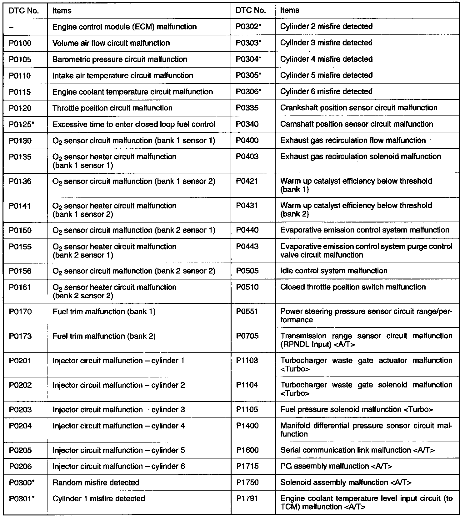 However, for items marked with an "asterisk", the MIL illuminates only on the first detection of the malfunction.