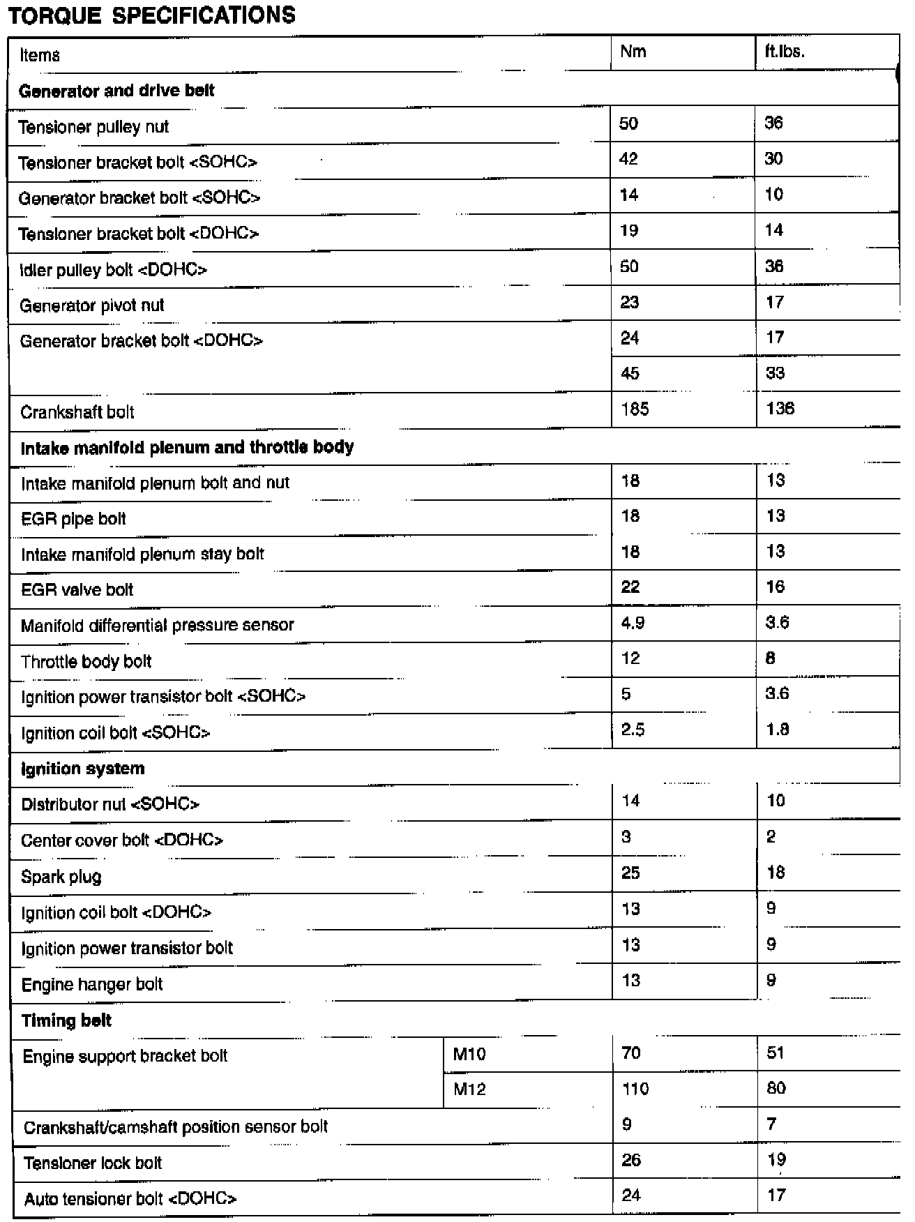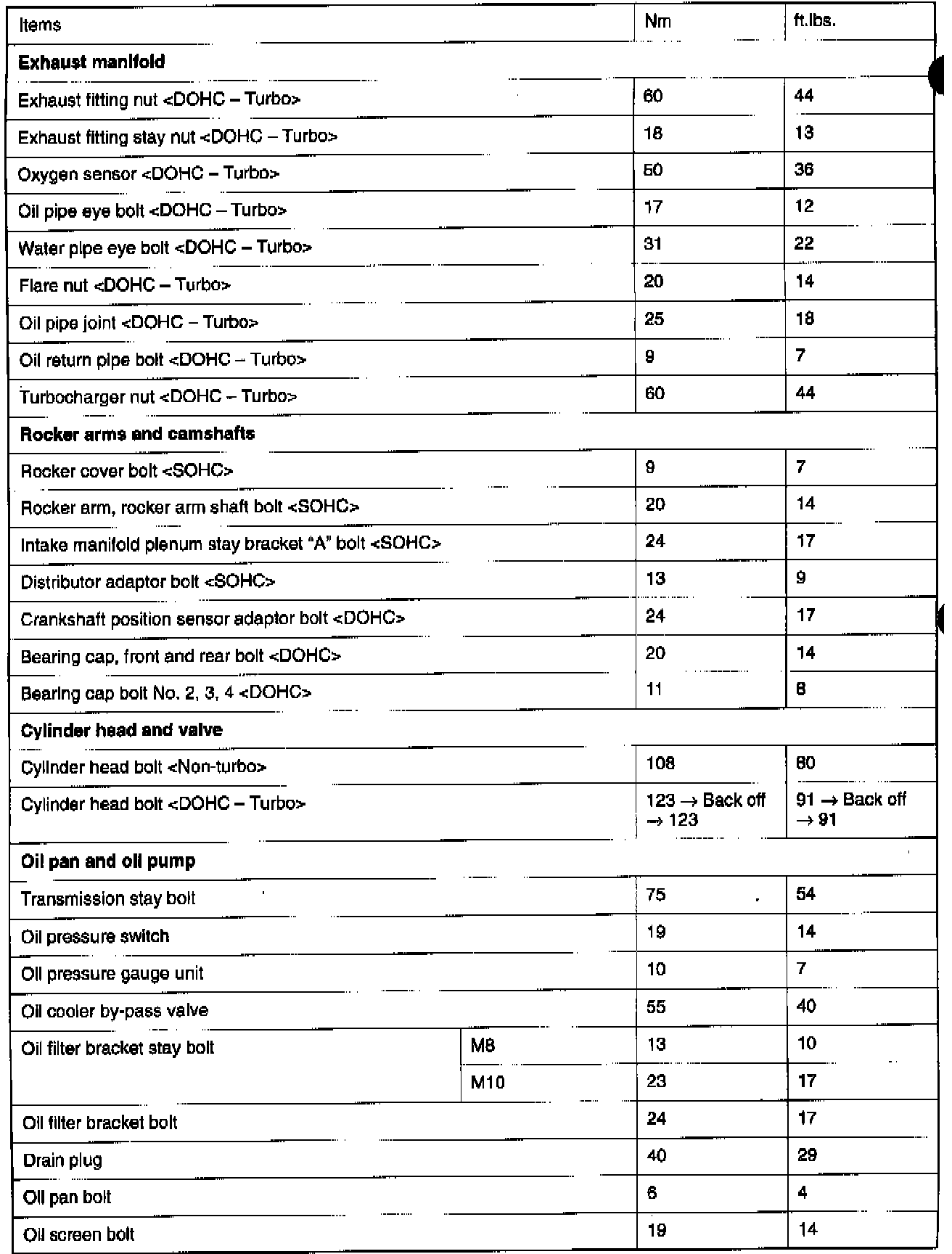 Cylinder Head Tightening Specifications