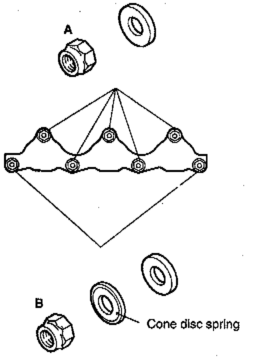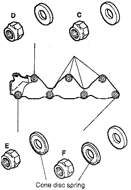 - Install the nut, cone disc spring and washer in the order shown in the illustration.