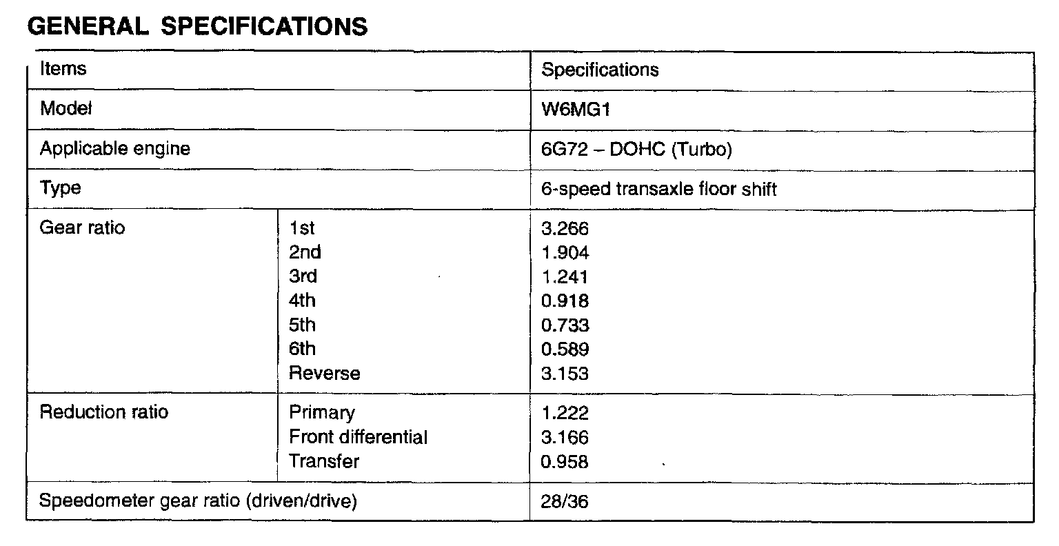 W6MG1 6-spd M/T, Gear Ratios: