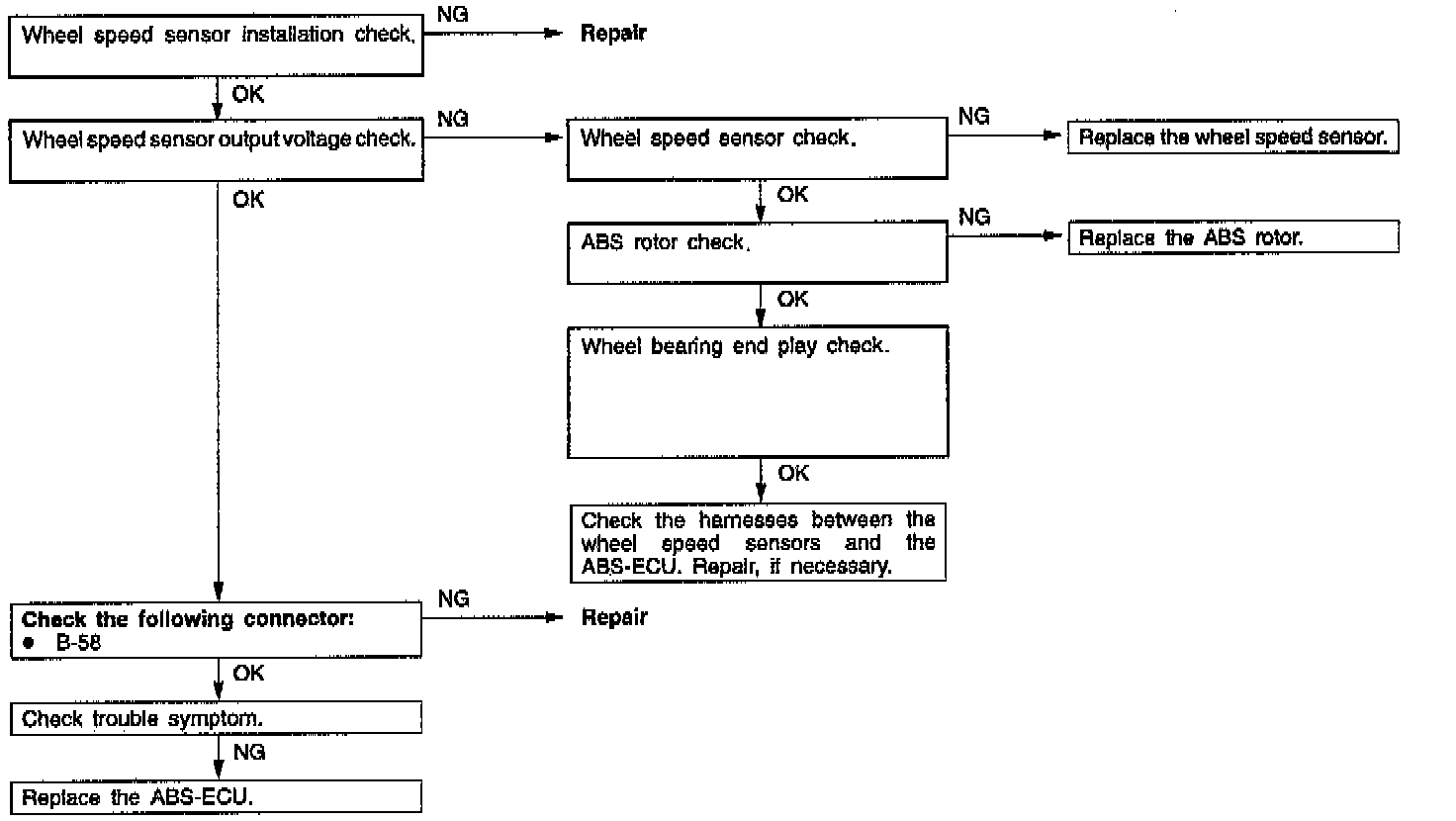 COMMENT: This Diagnostic Trouble Code (DTC) is output when there is a malfunction (other than broken wire or short circuit) in any of the wheel speed sensor output signals while driving. The following can be considered as the cause of the wheel speed sensor output malfunction: