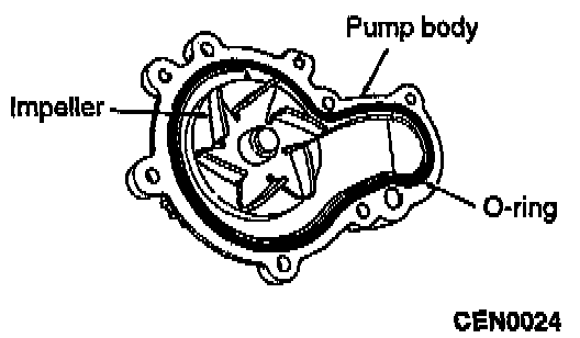 9. Install new O-ring gasket in water pump body O-ring groove.