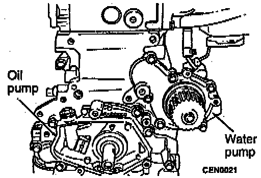 1. Remove water pump attaching screws to engine.