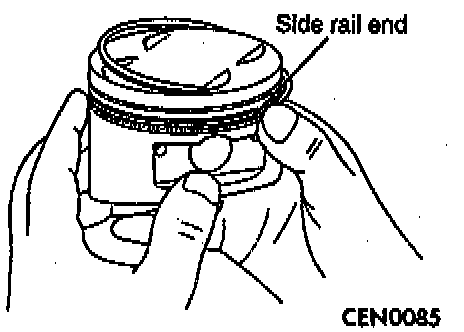 2. Install the side rail by placing one end between the piston ring groove and the expander. Hold end firmly and press down the portion to be installed until side rail is in position.