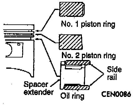 3. Remove the upper oil ring side rail, lower oil ring side rail and then oil ring expander from piston.