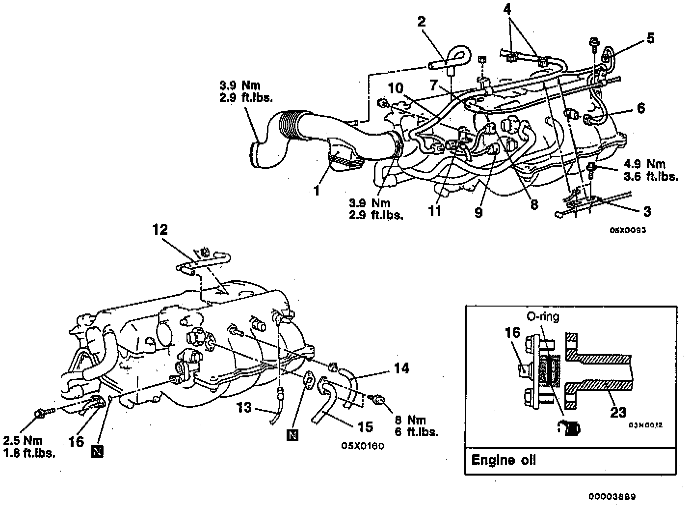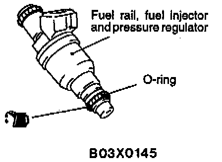 2. Apply a small amount of new engine oil to the O-ring of the fuel rail, fuel injector and pressure regulator assembly.