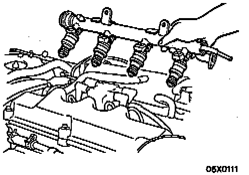 CAUTION: Do not drop fuel injector when removing fuel rail.