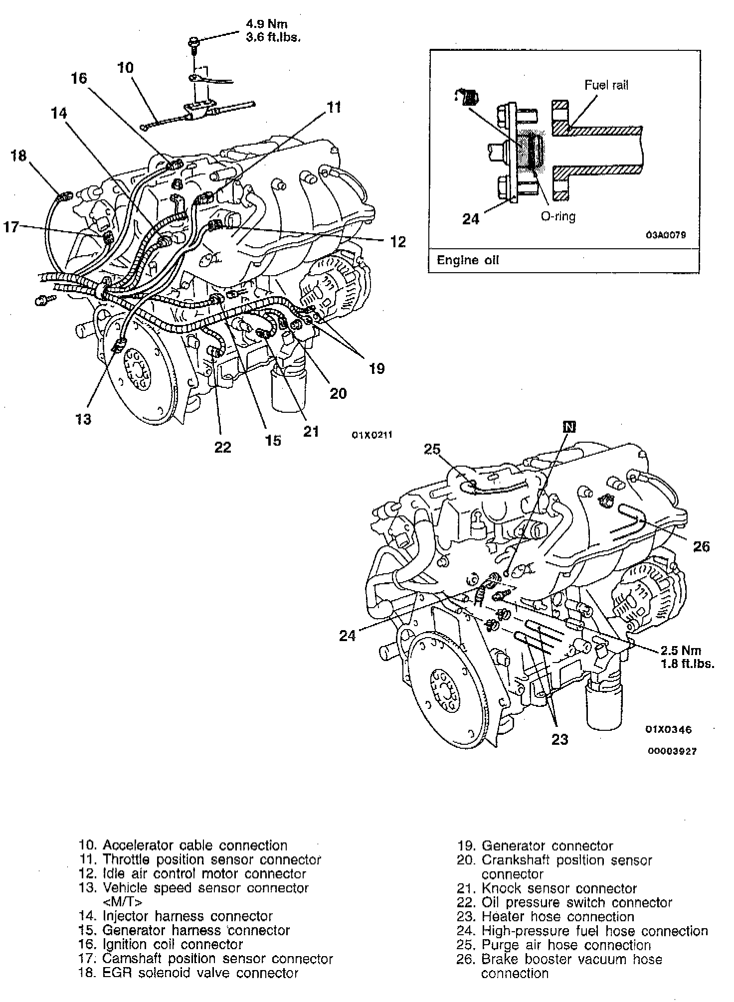CAUTION: Do not let engine oil get into the fuel rail.
