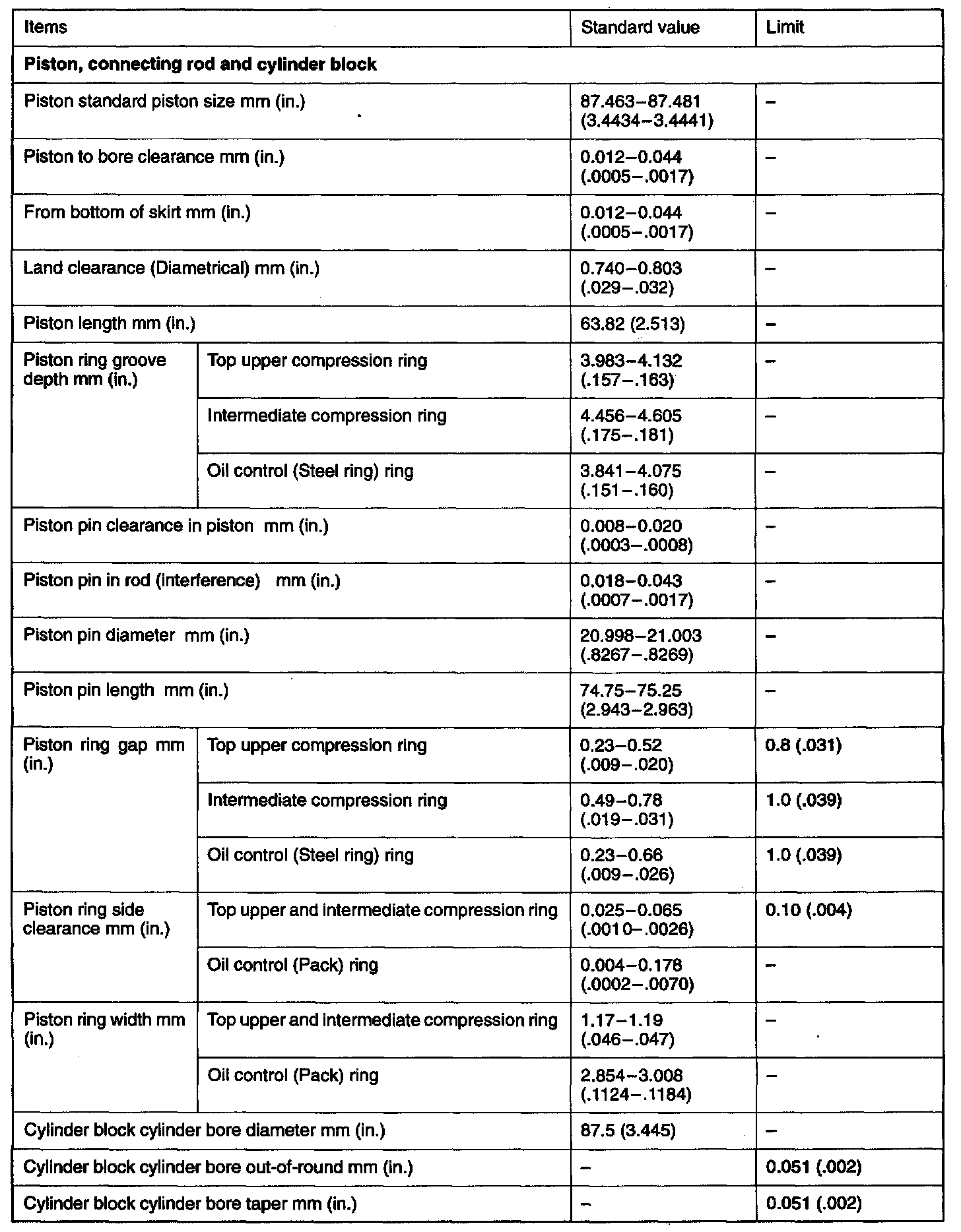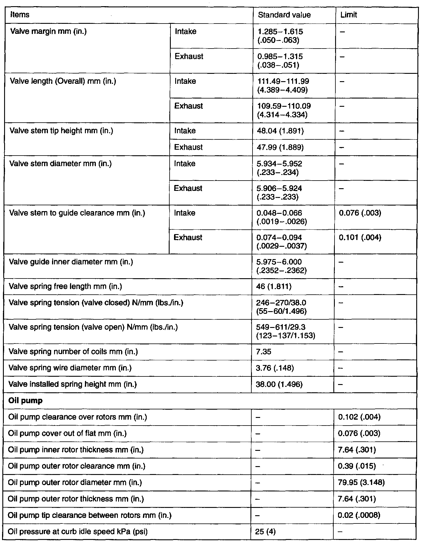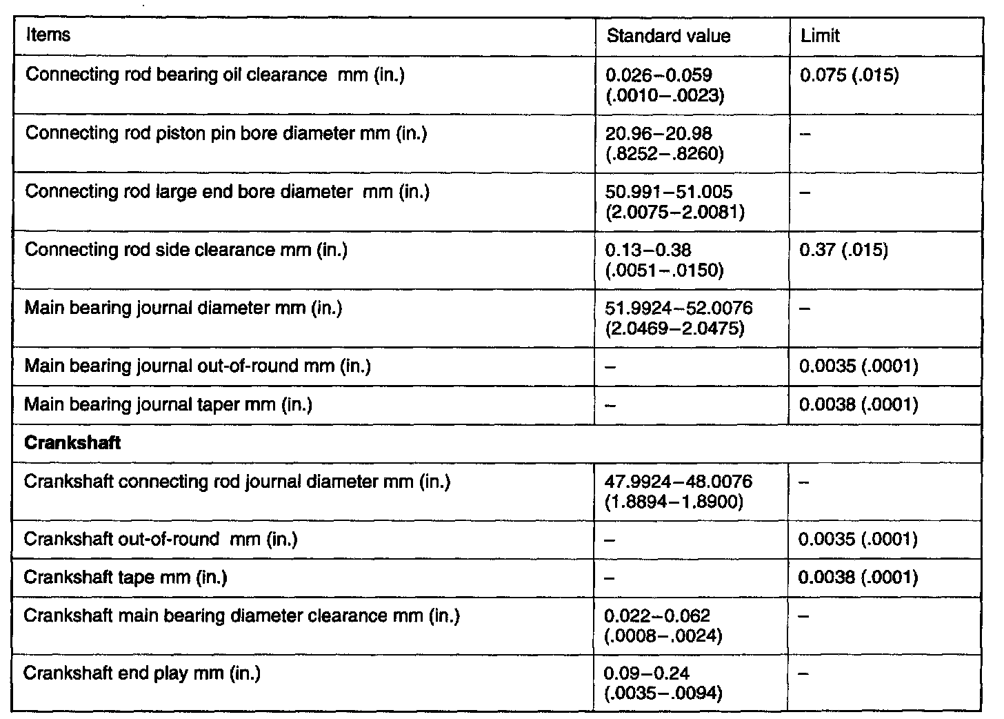 Engine-Overhaul Specifications