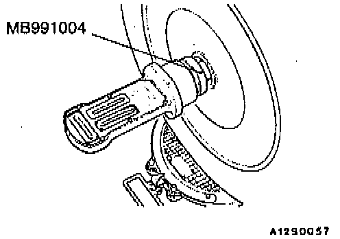 3. For vehicles with aluminum type wheels, attach the camber/caster/kingpin gauge to the drive shaft by using the special tool. Tighten the special tool to the same torque [196 to 255 Nm (142 to 184 ft. 1bs.)] as the drive shaft nut.