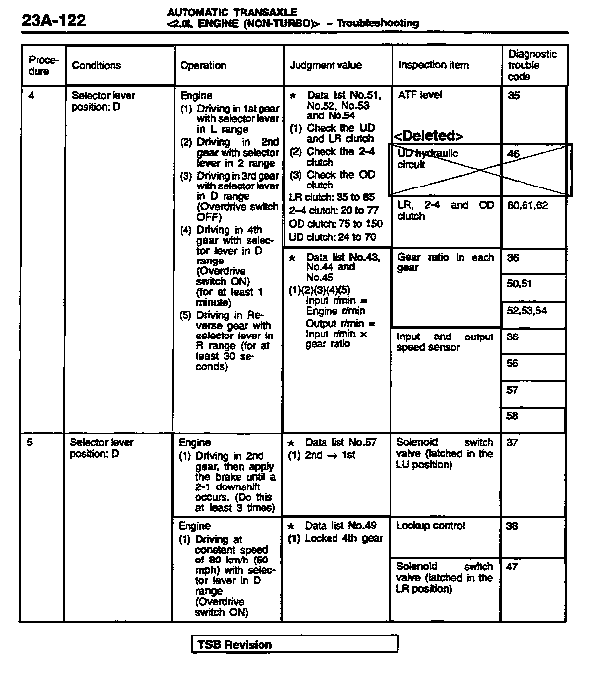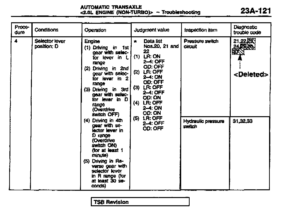 AUTOMATIC TRANSAXLE TROUBLESHOOTING AND ON-VEHICLE SERVICE PROCEDURES (F4AC1) - SERVICE MANUAL REVISION