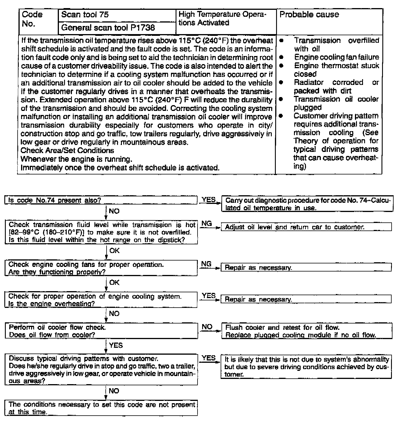 Revise the code 73 troubleshooting information as shown.