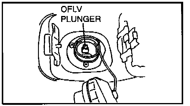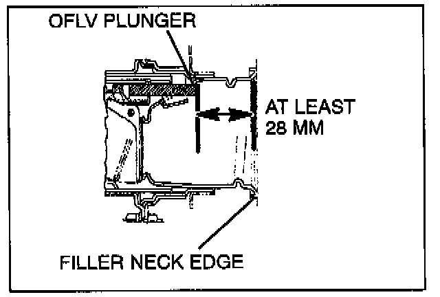 d. Remove the gas cap. Measure the distance between the edge of the fuel filler neck and the OFLV plunger.